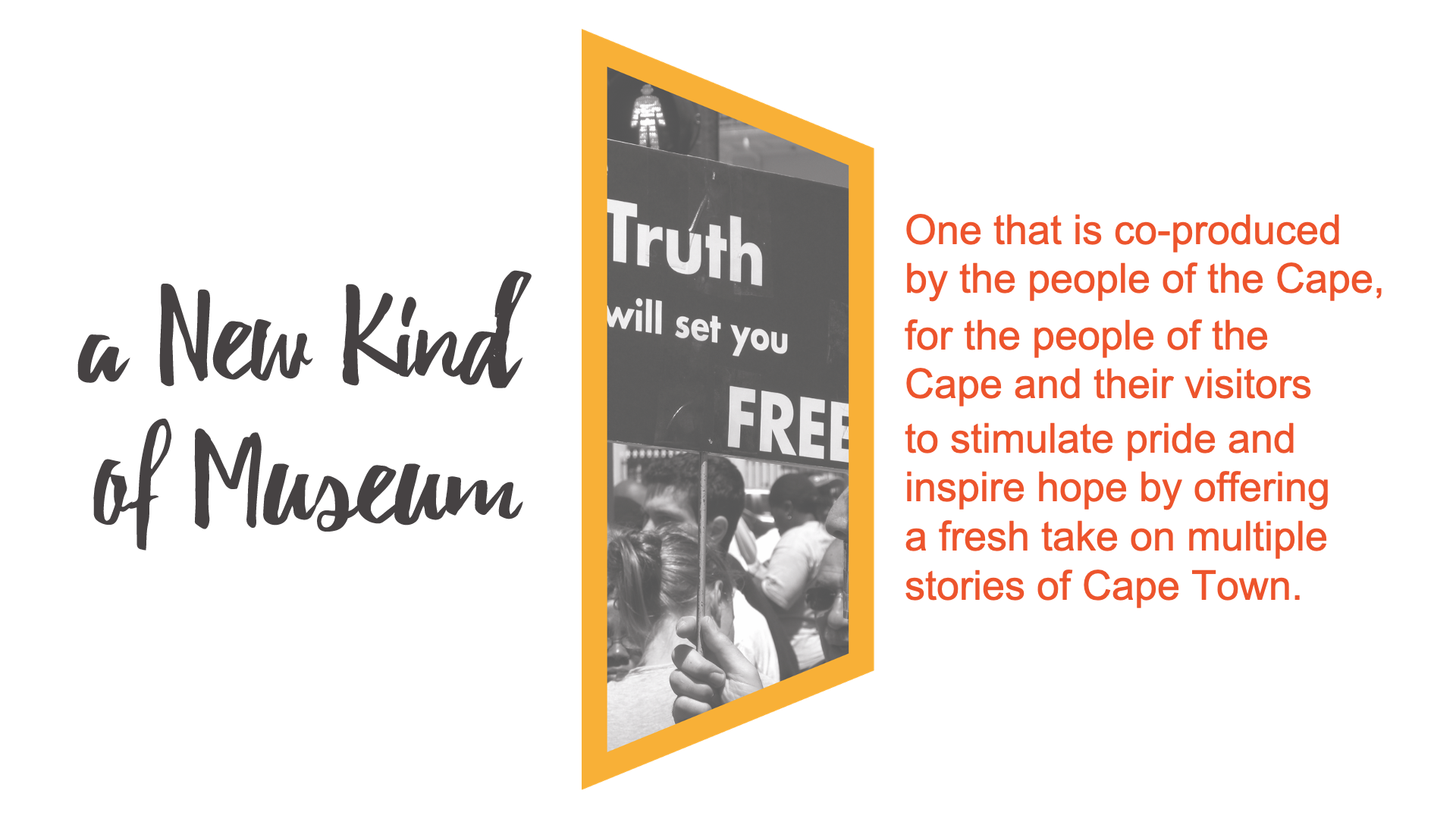 The idea and concept of the Cape Town Museum has been in development through a consultative process that has taken place over two years under the banner “What’s your Cape Town”. We engaged with heritage activists, community organisations and heritage organisations through several platforms, including public workshops in Parow, Langa, George, Cape Town City Centre, Lwandle, Mamre, and Muizenberg, social media and focus groups.
